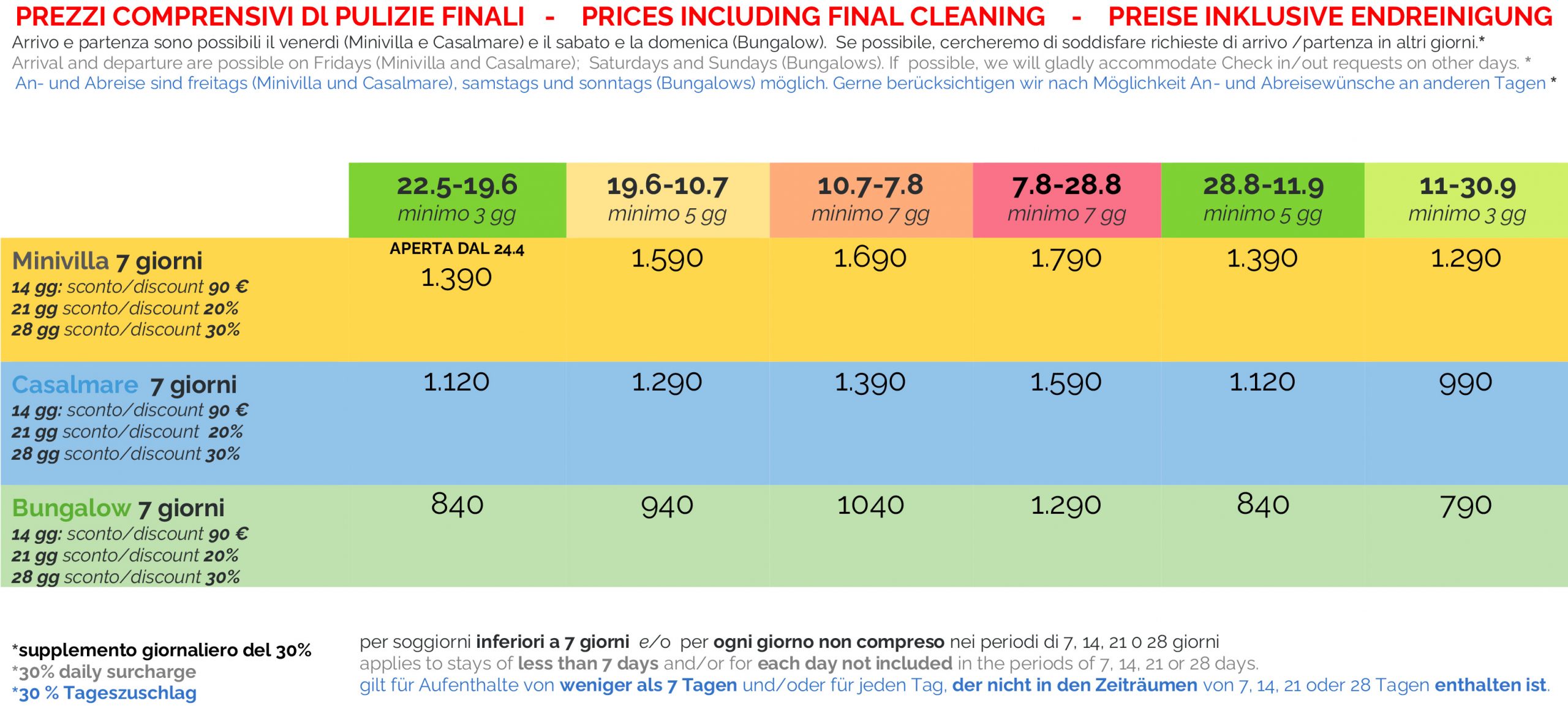 BUNGALOW: 4 Persone / CASALMARE 5-6 Persone / MINIVILLA: 5-6 Persone